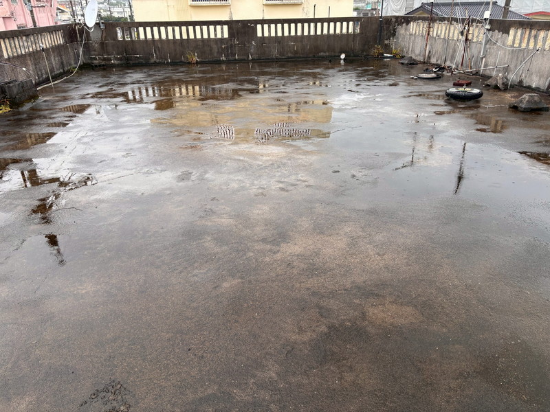 1月 うるま市 雨漏り部分、高所ロープ塗装工事・屋上防水工事